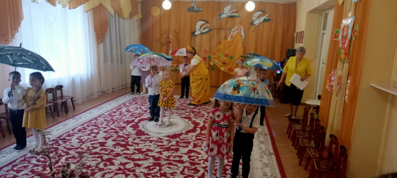 -Под зонтиком можно не только от дождя прятаться, но и играть